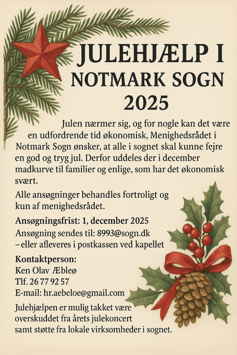 “I Notmark Kirke værner vi om traditionerne, samtidig med at vi skaber et levende og inkluderende fællesskab. Her finder du ro i sjælen, støtte i livets store begivenheder, og et sted hvor troen kan vokse i fællesskab med andre.”